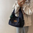 Color: Brown, Dark Blue, White Material: Canvas Bag style: Shoulder bag Lining: Polyester Opening method: Zipper Applicable scenarios: daily matching, commuting to work, students attending classes Package included:1 x Canvas Bag