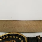 Guess Belt Women's Size Large Genuine Cracked Leather Belt 45 3/4 inch Long - Pre-Owned - Extra Hole Punched with Wear on 2 of the Holes, See Photo #4. Otherwise Belt is in Good Condition. - Measurement –Approximate Buckle to End - 45 3/4 in Width - 1 3/8 in - Any Season, Night Out, College, School, Everyday, Day Out, Shopping, Stylish, Chic, Trendy, Casual, Festive and Simple - Returns acceptable within 30 days of purchase unworn, in original condition - Check out my other listings. Lots of Choices Available. Reduced shipping for 2 or more items. Let me know when you've completed your shopping.