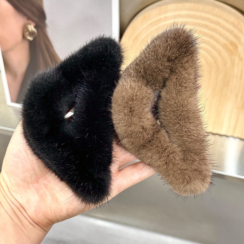 Women's Real Mink Fur Hair Clip for Bangs Bobby Pin Headwear