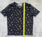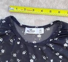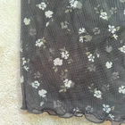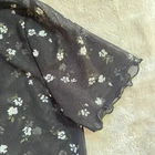 Womens Hollister Black Floral Blouse SZ XS Crafted for the modern wardrobe, this women's Hollister blouse presents a tasteful blend of comfort and style. The sheer top, sized XS, boasts a charming black floral pattern that adds a touch of elegance to any casual or festive setting. Featuring a lightweight and breathable sheer fabric, it ensures all-day ease, making it an ideal choice for year-round wear. With a ruffle accents, the blouse combines a classic touch with a playful twist. Short asymmetrical sleeves lend an artistic edge to the piece, while the straight hem offers a clean and flattering silhouette. Whether for a day out, a cocktail party, or a special event, this versatile garment is machine washable for effortless care.