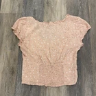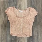 Hollister • Women’s Hollister Size Small Pink Flower Button Puff Half Short Sleeve Crop Top • Used But In Very Good Condition • Measurements: Width=15” , Length=17” • Shipped With USPS First Class Please see photos for further details and let me know if you have any questions