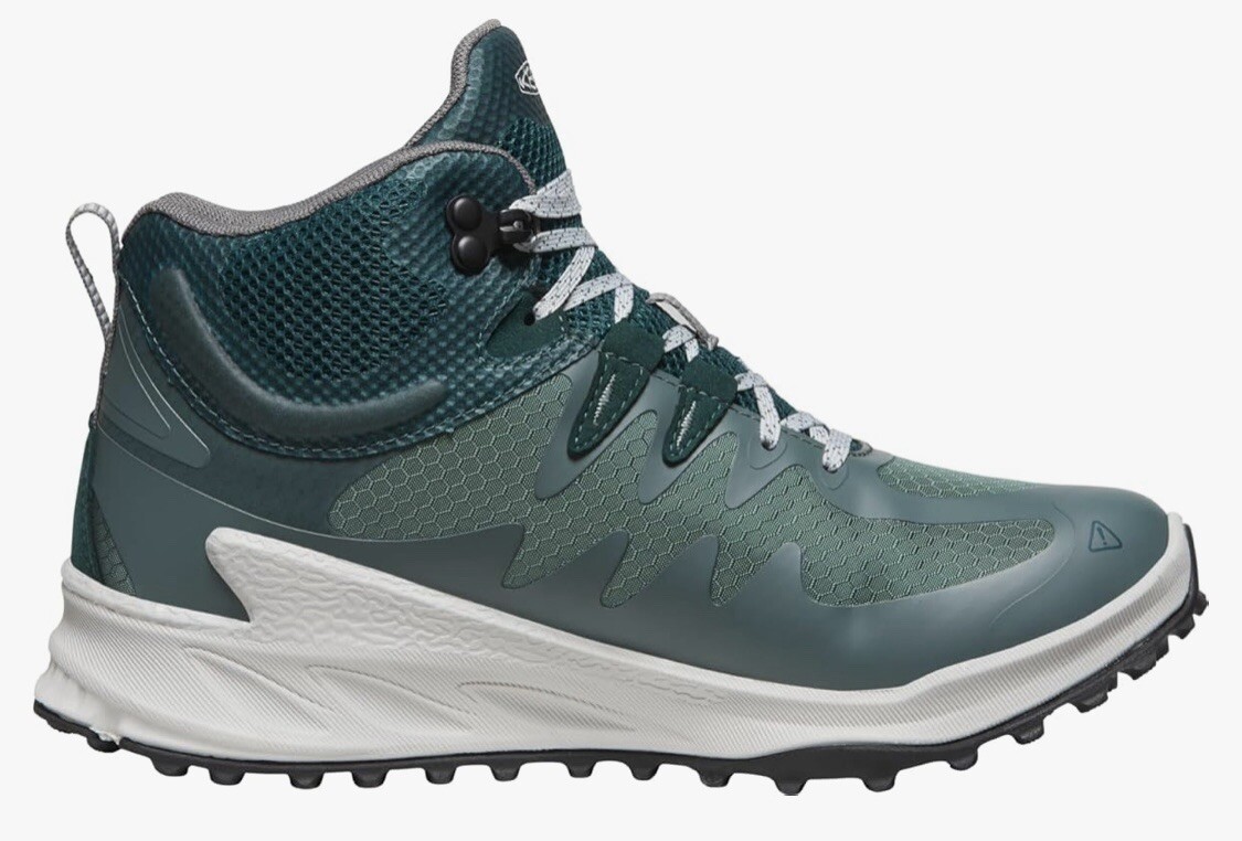 Step confidently into your next outdoor adventure with these KEEN Zionic mid-top hiking boots. Designed with women's size 6 in mind, these boots feature a waterproof membrane that keeps your feet dry in wet conditions, and a supportive fit that's perfect for tackling rugged terrain. The dark forest and sea moss colorway adds a touch of style to your hiking gear, ensuring you look as good as you feel on the trail. The athletic build and durable upper material are optimized for hiking and outdoor activities, providing both comfort and longevity. Whether you're scaling a mountain or exploring a local nature trail, these boots are equipped to handle any challenge. The KEEN Zionic is a solid choice for those seeking a reliable, waterproof all-terrain shoe that won't compromise on style or performance.