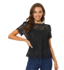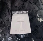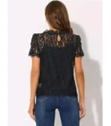 This lovely top featuring, a keyhole with button closure in the back, semi see through, scalloped eyelash trim, short Sleeves, shirred sleeve, Bust 22"