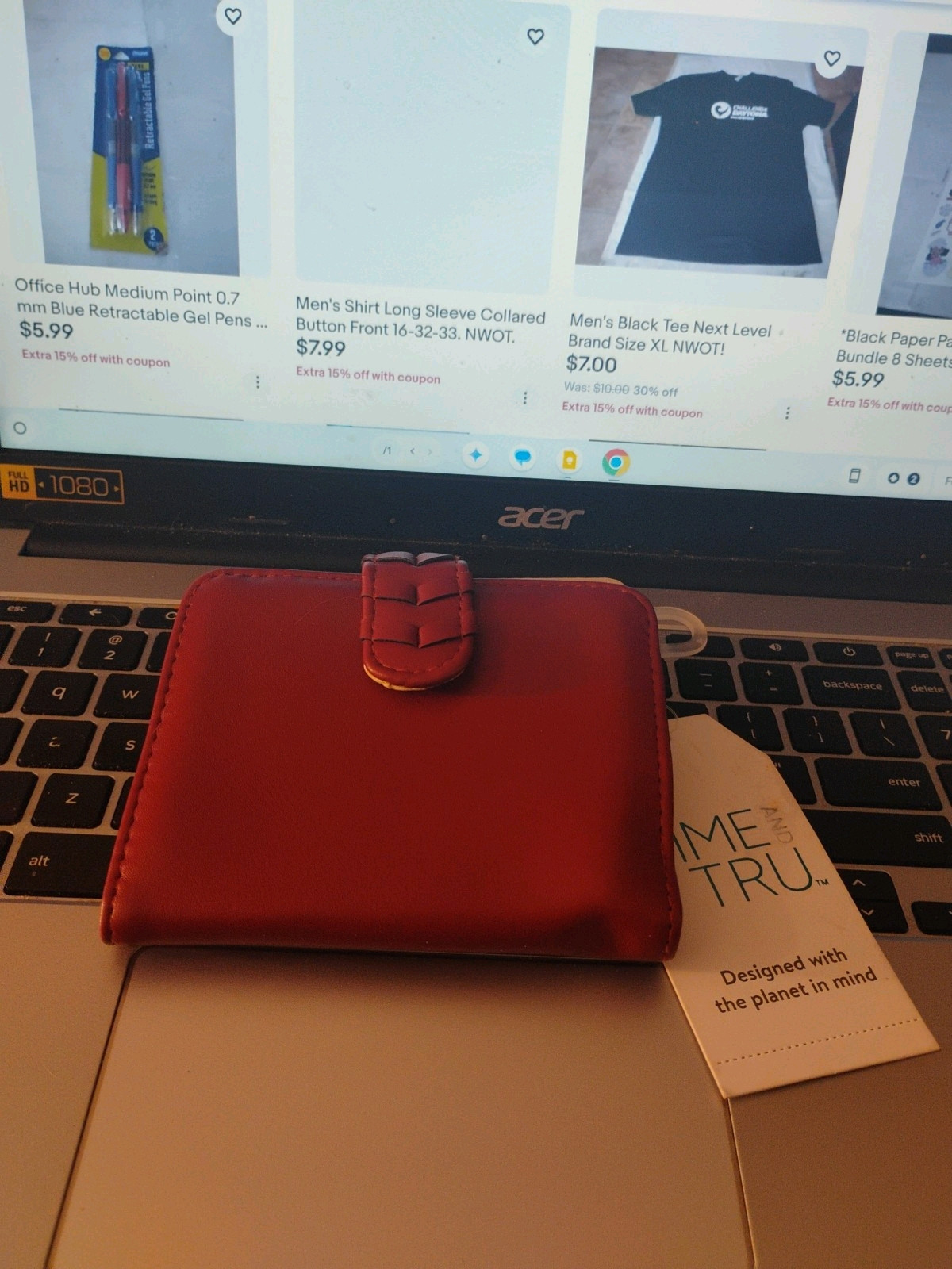 Features: Folding Type: Wallet UPC: Does Not Apply Color: Red Brand: Time And Tru Material: synthetic Department: Women Style: Everyday gtin13: Does Not Apply