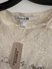 This beautiful blouse from FOREVER 21 is a must-have for any stylish woman. The floral pattern and classic fitted sleeves make it perfect for any occasion, whether it be a wedding, party, or even a casual day out. The blouse is made from a stretch lace/mesh blend, which makes it both lightweight and breathable. It features a crew neck and pullover closure, making it easy to wear. The blouse is available in size S and is suitable for regular size types. It is recommended to hand wash only to maintain its beauty. This blouse is perfect for the summer, fall, and spring seasons, and its ivory color complements any skin tone. Get your hands on this blouse now and add a touch of classic and city-inspired style to your wardrobe.