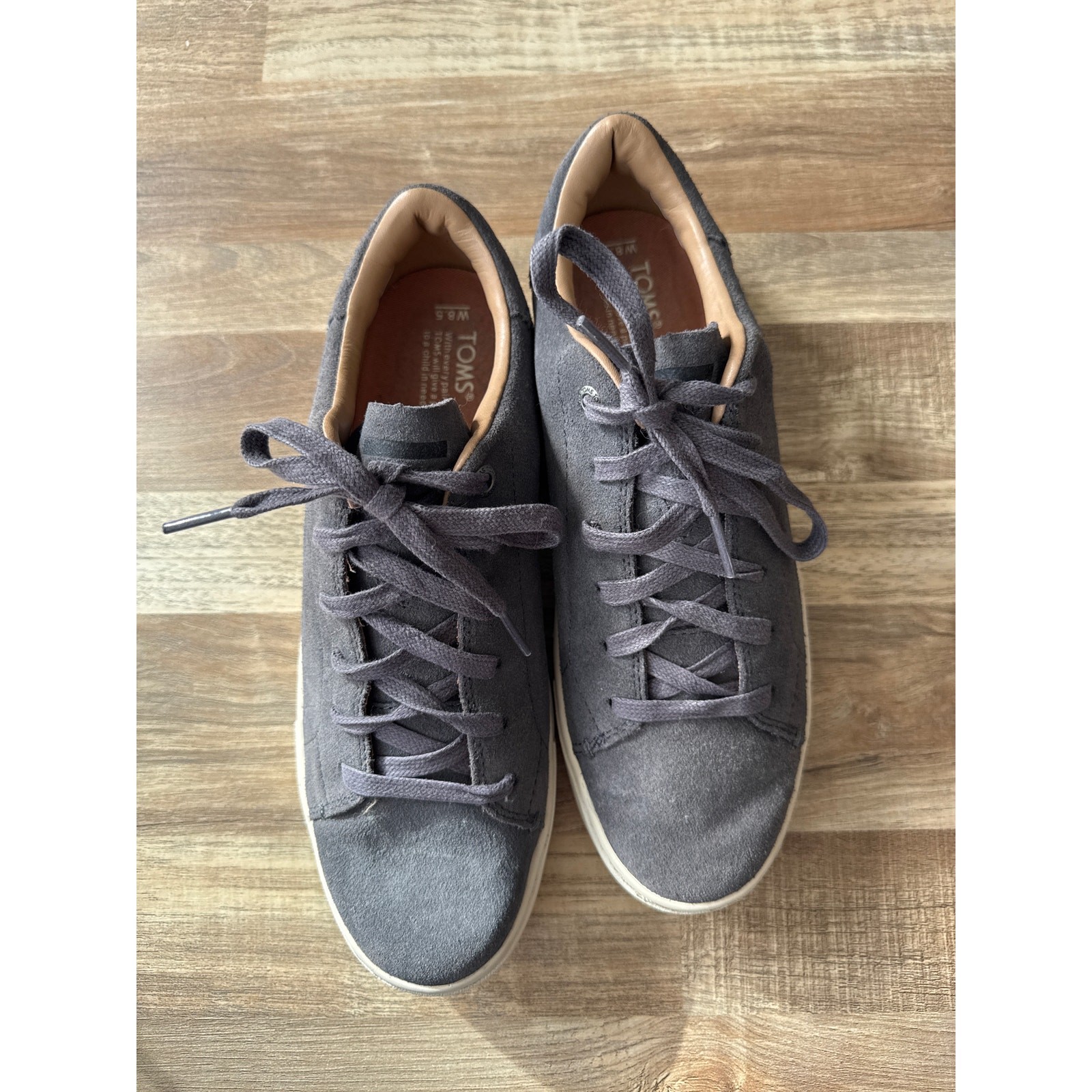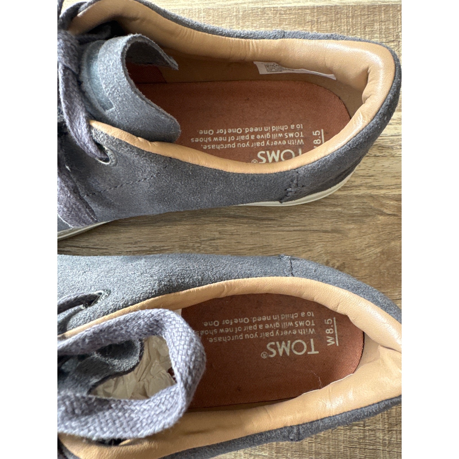Women's Toms Lenox Gray Suede Leather Lace Up Sneakers sz 8.5 Boho Quiet Luxury On-trend casual sneakers with suede upper Round toe Lace-up vamp Back pull tab Materials: Suede upper Suede lining Rubber sole