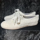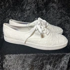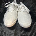 These are Women's US Sports White Shoes in Size 10. They are Low Top sneakers with a floral pattern, lace-up closure, and made of breathable canvas material. The shoes are lightweight, comfortable, and suitable for activewear and casual occasions. Ideal for walking, running, jogging, or the beach, they feature a rubber outsole for traction and foam insoles for added comfort. Perfect for summer, fall, and spring seasons.