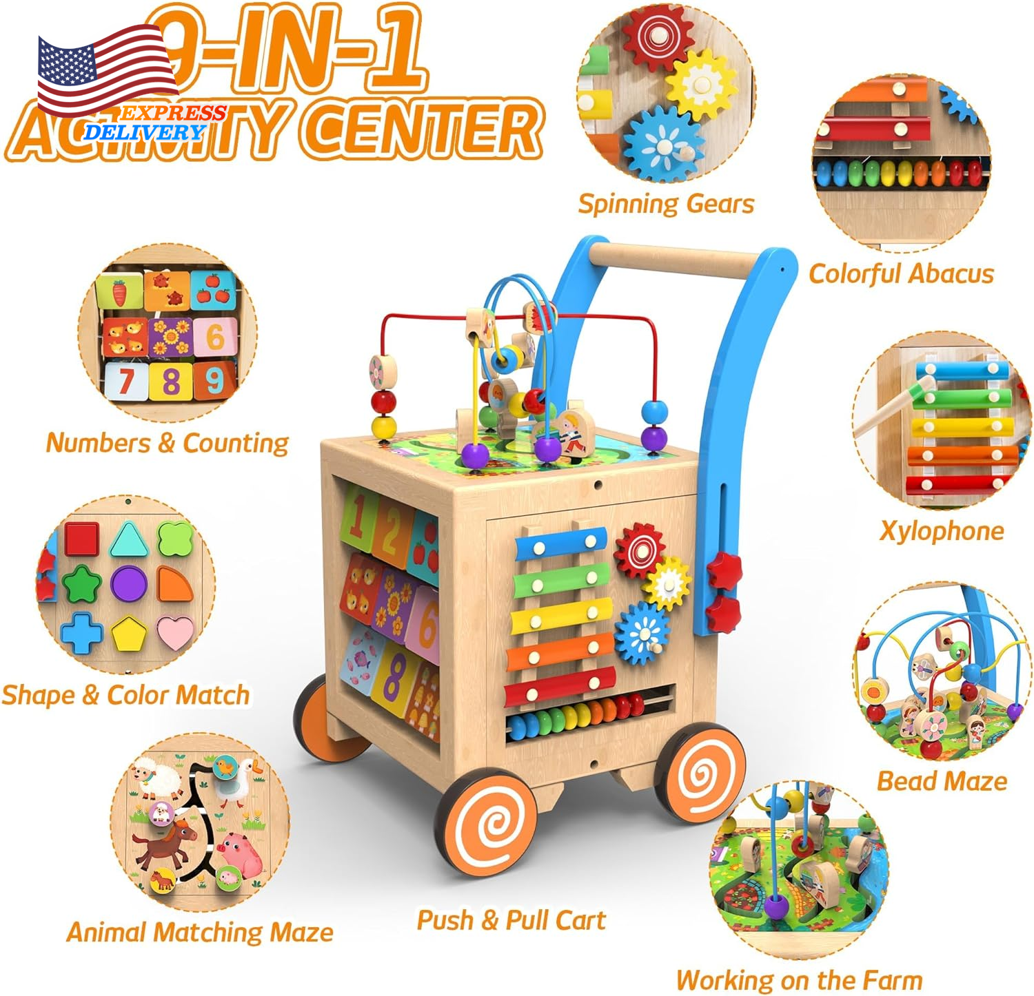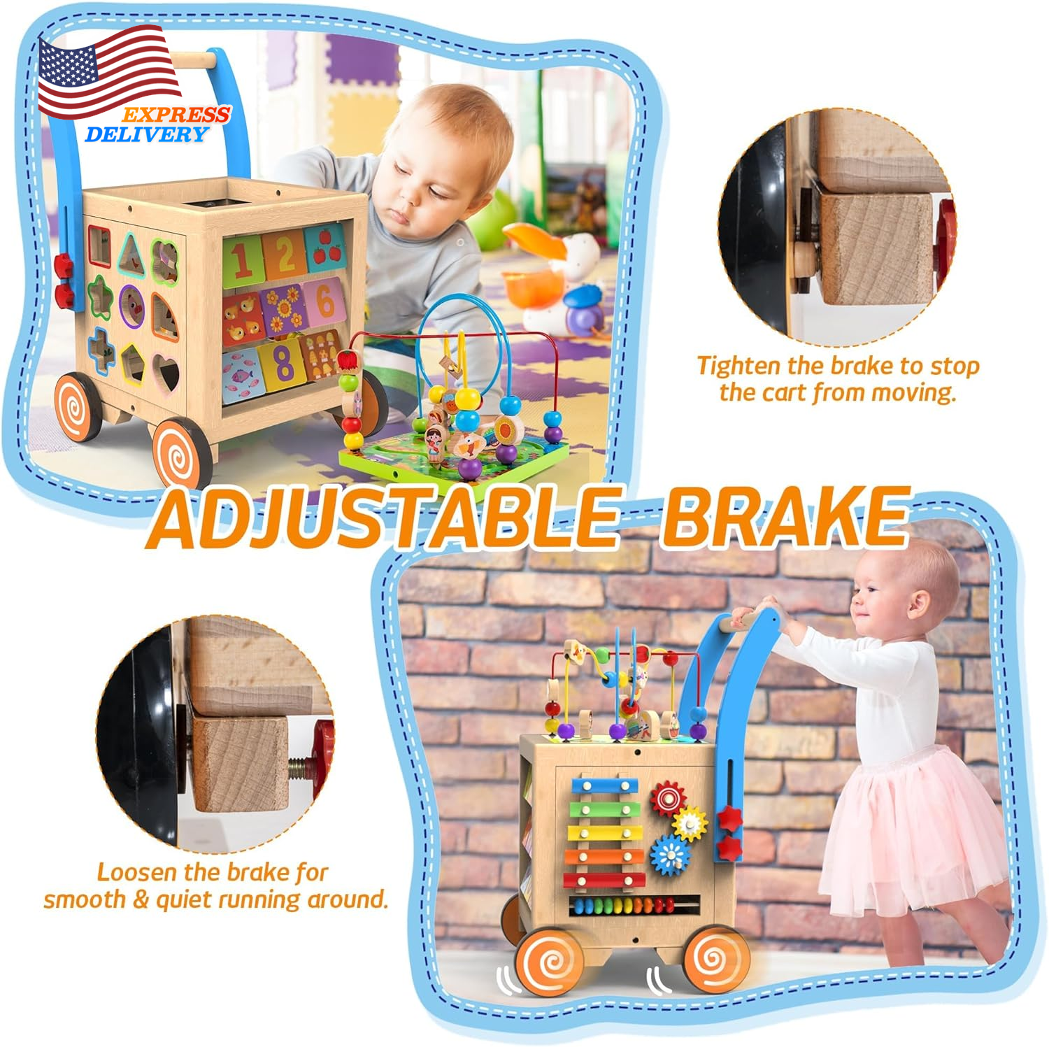 Store New Arrivals Add to Favorite View Feedback Contact Wooden Activity Cube Sit-To-Stand Learning Walker Activity Push & Pull Toys NEW Description Item model number Activity Cube Walker Style Activity Cube Walker Product Dimensions 14.6 x 13 x 22 inches Item Weight 15.01 pounds Manufacturer recommended age 12 months - 4 years 【Adjustable Speed and Height】This wooden baby walker features dual brakes on the rear wheels for easy speed adjustments, and a convenient nut next to the pole allows for effortless height modifications. This ensures a secure and tailored walking experience that grows with your baby. 【9-in-1 Activity Center】This versatile push walker includes 9 engaging activities such as numbers and counting games, shape and color matching, an animal maze, spinning gears, a baby xylophone, an abacus, a bead maze, a farm maze, and a push-and-pull cart. It offers endless, screen-free entertainment for 1 year old babies. 【Early Montessori Development】Designed with Montessori principles, this wooden activity cube encourages meaningful parent-child interactions. It promotes key developmental skills such as language, perception, and coordination through engaging shared play. 【Safe and Durable Construction】Crafted from high quality materials, this wooden walker features a solid construction and is finished with non-toxic water-based paint. Equipped with non-slip rubber wheels. Ensure a safe and stable experience for your young explorer. 【Ideal 1st Birthday Gift】Whether you need a baby learning walker or a stimulating activity center for a first birthday celebration, this wooden baby walker and activity cube is the perfect choice. It not only entertains but also encourages movement, coordination, and balance. 【Quick and Easy Assembly】Setting up this wooden walker takes less than 10 minutes for an adult. The top lid could be screwed securely into place, making it more stable and hassle-free for busy parents. Product description Adjustable Brake Equipped with an adjustable brake which can be tightened to stop the cart from moving, or loosened for smooth and quiet running around. Sturdy Wheels The stable baby walker has sturdy wheels that can walk on both carpeted and hard floors. Chunky Blocks Comes with blocks in 9 different colors and shapes that are big enough to avoid choking hazard. ABOUT US We offer the best prices around on high quality products. Our E-store includes media such as books, movies, music and games while offering electronics, toys, sporting apparel, clothing, tools, general home, garden items and more. SHIPPING We are always working hard to ensure your package arrives as soon as possible. Please understand that some factors like weather, high postal traffic, and the performance of shipping companies are outside of our control. We offer free shipping to the lower 48 states and ship within 2 business days of payment, usually sooner. We do not accept P.O. Boxes. Please provide a physical address. For shipping outside of the continental USA, we only use eBay's Global Shipping Program.The item is shipped to KY and then sent to the rest of the world. International customers are responsible for all duties and taxes. Continue to check out in order to calculate costs for shipping the item to your country. Messages regarding eBay's Global Shipping Program MUST be directed at eBay EXCLUSIVELY. RETURNS We offer a 30-Day Return Policy on items which you are not completely satisfied with. You have the option for a full-refund or an exchange of the item. No returns are available on items shipped outside of the USA. PAYMENT We accept PayPal. CONTACT US This page content is yet to come Please ad us to your favorite seller and visit again later Thank You CUSTOMER SATISFACTION We try our very best to make sure every customer is completely satisfied. If there's a problem, message us! We're happy to help. WE ACCEPT Copyright © 2021 AutoDS. | All Rights Reserved