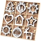 CRAFTED TO AMAZE: Premium Wood Magic! Delight in the holiday enchantment as each hanging ornament for Christmas tree comes to life through the premium wood and masterful laser cut precision. With a captivating 2-layer design, every detail of this wooden Christmas tree ornaments shines, and the addition of a jute rope and wooden bead makes hanging and decorating a jolly breeze! FESTIVE FIESTA: 27 Ornaments, Endless Joy! Get ready to unwrap pure joy with our merry pack of 27 Christmas tree ornaments. From heartwarming houses to twinkling stars, this jolly collection of Christmas decorations hanging boasts 9 delightful shapes, each with 3 unique designs. You'll find Santa's sleigh, gingerbread wonders, and snow-kissed scenes that light up your Christmas spirit! 3D CHRISTMAS DREAMS: Unwrap the Magic! Step into a world of enchantment with our ingenious 2-layer design. The white outline of the wooden Christmas decors dances against a wood-color background, crafting a spellbinding 3D Christmas landscape on every ornaments for Christmas trees. Feel the joy of a cozy holiday home, complete with festive scenes that warm your heart. PETITE & PERFECT: Oh-So-Ideal Size! These charming delights are perfectly sized at around 2.8 x 2.5 inches, making the Christmas ornaments your ultimate partners in Christmas decor. Whether they're adorning your tree or creating indoor wonderlands, these Christmas tree decorations fit like a snug winter glove in your holiday setup. RUSTIC RADIANCE: A Gift of Warmth! Embrace the rustic allure that captures the heart of the season. With their earthy charm and timeless appeal, these wooden Christmas tree ornaments are more than decorations—they're memories waiting to be made. And as the snowflakes fall, these Christmas decorations for tree stand ready to be the perfect Christmas gift for your cherished loved ones. Product description Diverse Christmas Elements: From Santa Claus and gingerbread men to nativity scenes and winter landscapes Our ornaments showcase a diverse array of Christmas symbols, making them an enchanting addition to your holiday festivities. BASIC INFORMATION Quantity: 27 wooden Christmas ornaments Material: Premium wood Designs: 9 different shapes, 3 designs for each shape Size: Approximately 2.8 x 2.5 inches each Hanging: Jute rope and wooden bead included Effortless Elegance: Measuring around 2.8 x 2.5 inches, our ornaments are the ideal size for both Christmas tree decoration and indoor festive displays, ensuring an effortless touch of elegance to your holiday décor. Welcome to Ovootok, where holiday dreams come to life! At Ovootok, we're dedicated to infusing warmth, magic, and festive joy into your celebrations. Capture the magic of Christmas with our 27-Piece Wooden Christmas Ornaments Set. Whimsical Variety: Unwrap joy with a pack of 27 ornaments, encompassing 9 charming shapes, from hearts to snowflakes, each adorned with 3 distinctive designs that encapsulate heartwarming Christmas elements. Captivating 3D Design: Our ingenious 2-layer design with a white outline and foreground against a wood-color background brings every ornament to life, forming a spellbinding 3D Christmas scene that evokes the spirit of the season. Rustic Charm: Embrace the rustic allure of the season with our wooden wonders, adding a timeless and earthy charm that transforms your space into a winter wonderland. Easy Hanging Delight: Each ornament is thoughtfully equipped with a jute rope and wooden bead, making hanging and decorating an enjoyable part of your holiday traditions. Heartfelt Gifting: Spread the warmth of the season with these rustic ornaments that make for the perfect Christmas gift, embodying the love and joy shared among loved ones.