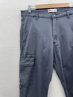 The Wrangler Cargo Men's Pants are a versatile choice for travel, casual outings, or workwear. This pair in size 30 features a comfortable cotton blend fabric in a stylish gray color. The regular fit pants have a mid-rise with straight legs and a 33-inch inseam, suitable for various seasons. They are designed with cargo pockets for added convenience, a flat front with button and zipper accents, and the Wrangler logo for a touch of style. Easy to care for, these pants are machine washable and offer both comfort and functionality for everyday wear.