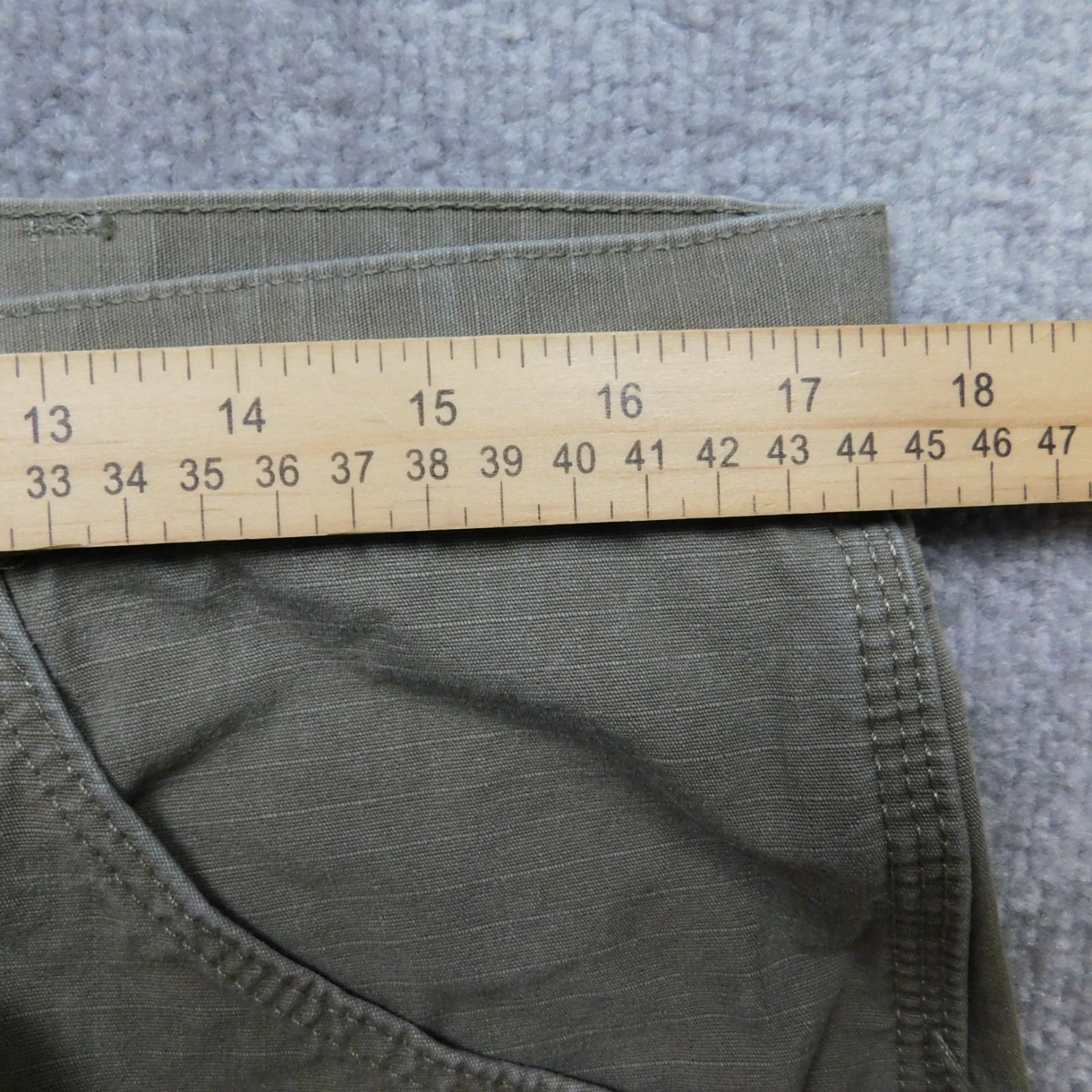 Good used condition. Basic wear and tear. See photos for measurements and details. A little bit broken in, but honestly still very sturdy and durable. Lots of pockets: slash pockets, big cargo pockets, back pockets and a carpenter loop Measures 35" waist, 12" rise, and 10" inseam. - Open to all offers! - Colors vibrant, item free from significant stains or damage. Item gently used, well cared for. Item measurements are in the photos. - Our items are all carefully examined, measured, photographed and stored in a smoke free environment. - We do our best to describe accurately and measure approximately at the time of listing, but just in case, we offer 60 day free returns on undamaged items. - Items typically ship the same or next business day - Items cleaned per eBay requirements. - We combine shipping on 2 or more items ordered at the same time. The difference will be refunded when we process the order. Make it yours now!