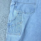 Brand: Wrangler RIGGS Workwear Style: Mens cargo carpenter denim shorts in a light wash blue. Color: Light wash blue; Material: 100% cotton denim; Made in Mexico of US fabric. Tag size: 42; Style/Model code: 3W320VI; additional code: SAS-1331-006; RN 130273; CA 55394. Details: Flat front, zip fly with button closure, belt loops, front hand pockets with coin pocket and leather logo trim, large rear patch pockets with logo patch, side utility pockets, and side hammer loop. Occasion and fit: Relaxed fit workwear shorts suitable for casual wear, job sites, carpentry, or outdoor tasks. Item is in gently worn pre-owned condition. Item may contain normal signs of wear, blemishes, discoloration, creases and/or other signs of distress. Photos depict the exact item you will receive including measurements . Please refer to photos for full details prior to purchasing. If need be please measure against a similar clothing item you own. Items are cleaned in accordance with eBay's policies and standards and stored in a smoke free weather controlled environment. Fast USPS Shipping - 30 Day Free Returns - Hats Ship in a Box
