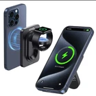 XCOOL SNAPSTAND MAGNETIC 3-n-1 wireless power bank is a slim and lightweight device designed for Apple devices. It features a kickstand, magnetic attachment, and wireless charging capability for Apple Watch. With a capacity of 5000mAh and 20w voltage, it is compatible with Apple iPhone 14 Pro Max, 14 Pro, 13 Pro Max, and 13 Pro models. The power bank has a sleek black finish and offers wireless and USB-C connectivity options.
