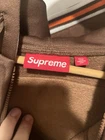 Elevate your streetwear game with this Supreme Football Zip Up Hooded Sweatshirt in Brown. This hoodie is perfect for any football enthusiast who wants to show off their love for the game in style. It features a full zip closure and a hood for added warmth and comfort. Made by Supreme, a leading brand in the fashion industry, this hoodie is available in sizes Small and Medium. It is crafted from high-quality materials and designed to last. Whether you're going to a game or just hanging out with friends, this hoodie is sure to make a statement.
