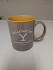 The Yellowstone ceramic coffee mug is a modern-style, round, medium-sized mug that can hold 11.5 oz of hot or cold beverage. It features the logo of the Dutton Ranch and is handmade with ceramic and porcelain materials. The mug is machine washable and has a capacity of 11.5 oz. It is a gray color with yellow accents and is an original, licensed reproduction from the Yellowstone franchise. Perfect for all occasions, this mug is a great addition to any kitchen or collectible display.