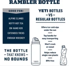 About this item Get to drinking faster with the Chug Cap. It just takes a quick half-twist of the TripleHaul Handle to open and then you’re good to go, making it easy to steal a sip without slowing down This Double-Wall Vacuum Insulated water bottle has the power to keep your water cold (or coffee hot) until the last sip 18/8 stainless steel construction stands up to even the toughest of conditions DuraCoat Color that is built to last - no fading, peeling, or cracking here The Chug Cap is not intended for use with hot beverages. Bottle Dimensions: 3 ¾ inches in diameter and 10 ¾ in high Product information Technical Details Brand YETI Capacity 2.3 Pounds Color Big Wave Blue Special Feature Leakproof Product Dimensions 3.75"W x 3.75"H Material Stainless Steel Number of Items 1 Included Components Lid Product Care Instructions Dishwasher Safe Cap Type Loop Cap With Lid Yes UPC 888830324899 Manufacturer YETI Part Number 21071502686 Item Weight 1.61 pounds Item model number 21071502686 Size 36 Ounces Special Features Leakproof Batteries Included? No Batteries Required? No On Feb 7, 2025 at 01:03:13 PST, seller added the following information: