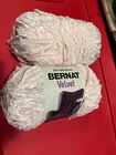 2 Skeins (or almost; one wrapper is missing) of Yarnspirations Bernat Velvet Yarn, Color Blush Pink. 1 skein is 220 yards. From the Yarnspirations website: A luxurious, soft, cozy yarn, Bernat Blanket is a chenille-style yarn perfect for home décor projects. From blankets, to crochet baskets, Blanket is ideal for a wide range of projects. Its super bulky weight stitches up quickly, making it a great choice for Afghans and blankets. Available in a wide range of solid and variegate shades to compliment your home décor. Coveniently machine washable and dryable.