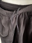 New in the bag with drawstring and zippers on the bottom. The Yeezy YZY x GAP H10 Polar Fleece Pants in black, size L, exude a designer-style created by Kanye West. These relaxed-fit sweatpants are made of a comfortable heavyweight fleece fabric blend of polyester and cotton, perfect for activities like gym training, track and field, or casual wear during the fall, winter, or spring seasons. The pants feature a straight leg design and are suitable for men looking for a fashionable and functional addition to their activewear collection.