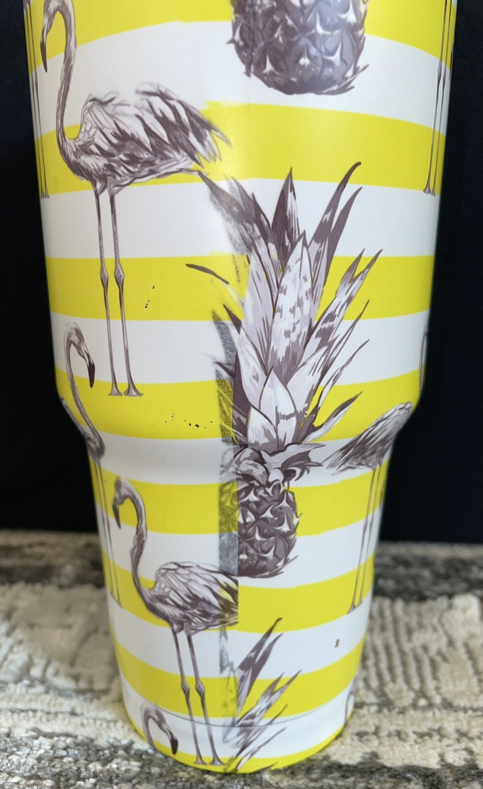 This Yeti is used and does have slight wear. It is listed at a lower price due to the wear, please see below for description of the defects. Bottom ring of the tumblers paint is pretty scratched & it’s peeled up where it says “YETI” - see picture #7 The sides of the tumbler have slight paint chips here and there, not very noticeable unless you’re really looking for them - see picture #’s 4, 5, & 6