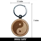 Yin and Yang Symbol Engraved Wood Round Keychain Tag Charm