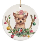 Yorkshire Terrier Puppy Dog Deer Anlters Christmas 2024 Ornament Ceramic Gift