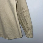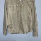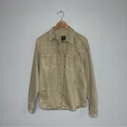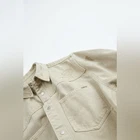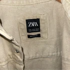 Zara Ripped Denim Overshirt Men's size medium Excellent condition, no flaws Colour: Khaki/light tan DETAILS Relaxed fit overshirt. Lapel collar and long sleeves with buttoned cuffs. Patch pockets at chest and welt pockets at hip. Washed effect. Front button closure. Approx measurements (flat): Pit-to-pit: 21" Shoulder-to-hem length: 28"