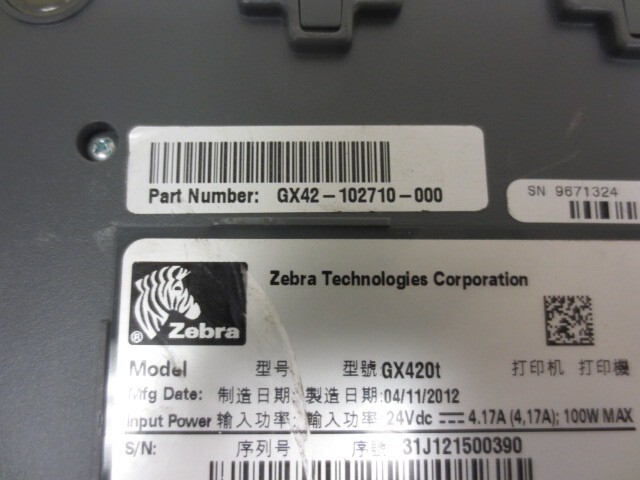 Zebra GX420t Thermal Label Printer GX42-102710-000 No AC adapter or other accessories. Used with scratches, scuffs, and dust. See pictures for more detail. Item is in working condition. Come with a 30 day warranty. The item which shown on the photos is actual item. You will receive what you see on the pictures.