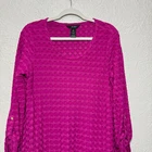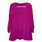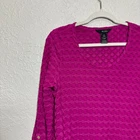 Item For Sale: ali miles Top Shirt Medium Textured 3D Knit Jersey Roll Tab Scoop Neck Long Work Women's size medium Fuchsia, magenta, hot pink color Textured 3D jersey knit fabric with a moderate stretch Scoop neckline 3/4 sleeve length with roll tab cuffs and button accents Long line, not quite tunic length Fabric Content: 50% rayon, 48% polyester, 2% spandex Approximate Measurements: Shoulder to shoulder: 15.5" Pit to pit: 20" Length: 30" Item Condition: Item is in very good preowned condition with no flaws. Shipping Information: Purchases are shipped the next business day after full payment is received, and on occasion an item purchased early in the day may end up shipping out that same day. The shipping service used will depend on the specific weight and dimensions of the item, but the most commonly utilized services are USPS First Class, USPS Ground Advantage, or USPS Priority Mail. If this is a book purchase, USPS Media Mail is used. Free returns are accepted for any reason within 60 days of purchase. The return shipping is free to the buyer. Once the returned item has been received, you'll be issued a refund for the original item cost (not including the original shipping cost). Store Information: Thank you for supporting my small business! Providing affordable, quality products and top-notch customer service is my top priority. If you have any concerns about an item you receive, please don't hesitate to reach out. I'm always happy to address any concern you may have.
