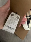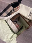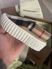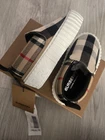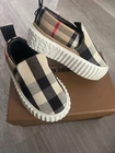 Introducing the perfect shoe for your little one, the BURBERRY child slip on shoe. This shoe features a slip-on closure, making it easy for your child to put on and take off the shoe independently. The shoe is designed with a multicolor pattern and Burberry logo accents, adding a touch of designer style to your child's wardrobe. The shoe is made with high-quality polyester upper material and rubber outsole material, ensuring durability and comfort for your child. The shoe is suitable for both baby girls and boys, with UK shoe size 6 and US shoe size 7. This loafer style shoe is perfect for any occasion, whether it's a day out in London or a special event.