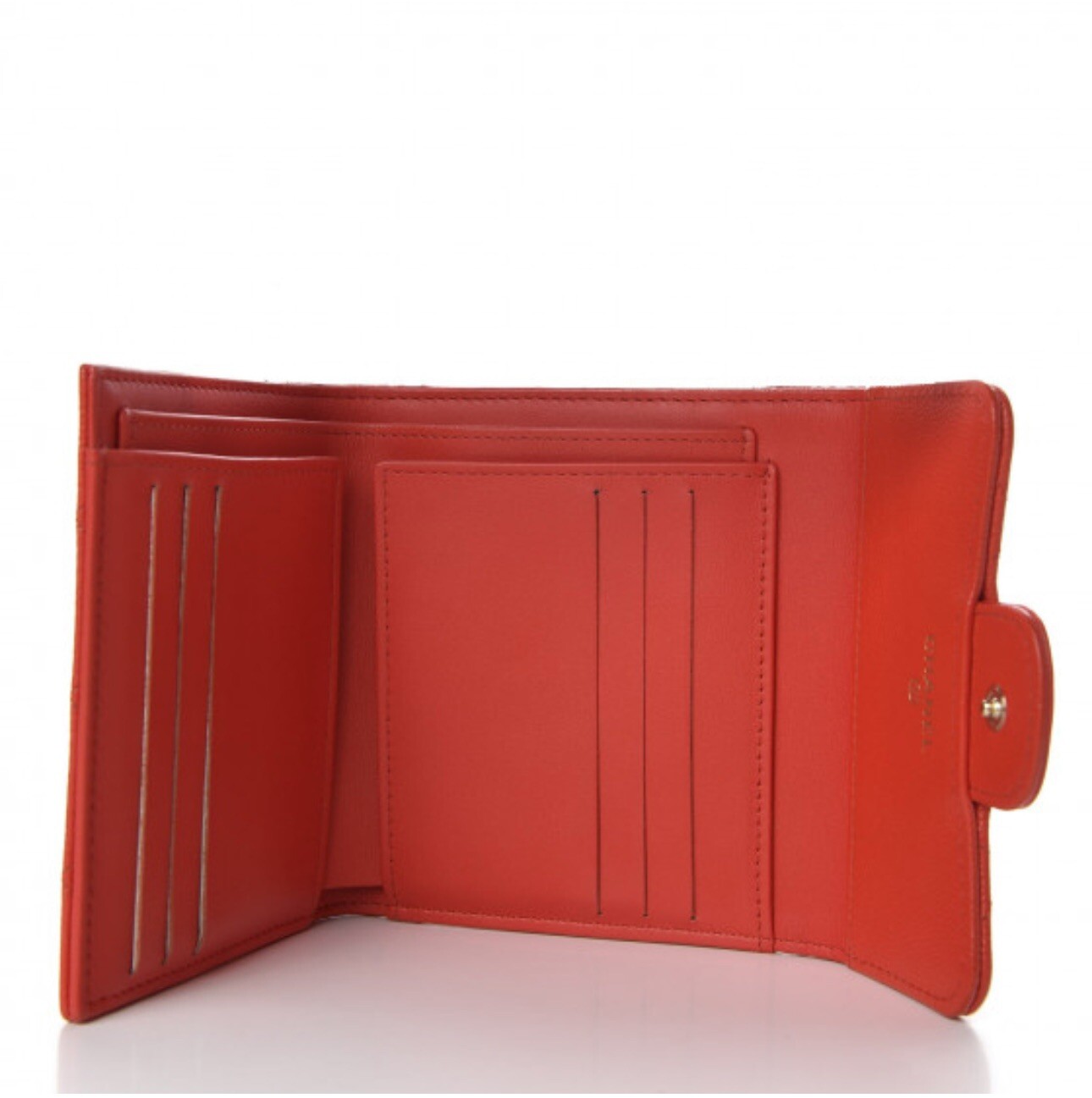 Size Base length: 4.50 in Height: 4.25 in Width: 1.00 in Description This is an authentic CHANEL Caviar Quilted Compact Flap Wallet in Red. This stylish compact wallet is crafted of luxurious diamond quilted caviar leather in red. The wallet features a small polished light gold Chanel CC logo and a flap pocket. The wallet opens to red interior with card slots and a bill pocket. This is a perfect wallet, ideal for everyday use, with the one of a kind style, from Chanel! Condition very good