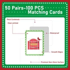 gisgfim 50 Pairs Memory Matching Game Merry Christmas Concentration Memory Games for Kids Educational Ages 3-8 A Fun & Fast Christmas Winter Theme Memory Matching Games Product Details 100 matching cards: This memory matching game set includes 100 cards featuring 50 cute Christmas themed pairs, all neatly packed in a durable and stylish storage box. With clear designs and vibrant colors, these cute winter pattern offers a fun way for your child to enhance their memory skills while enjoying hours of entertainment. Perfect for engaging learning and endless fun! High quality: Each merry Christmas concentration memory games measures approximately 6 x 8 cm (2 x 3 inches), features smooth surfaces with rounded edges, making them perfect for small hands. Crafted from thick cardboard, these cards are durable and resistant to bending or warping. They come in a sturdy, reusable box that allows for easy and compact storage. Printed on both sides with eco-friendly plant-based inks and coated with premium film, the cards can be easily cleaned with a damp cloth. Attractive matching game: This fun & fast memory game features a fun matching game cute Santa Claus, Christmas tree and snowman patterns. It sparks children's curiosity, enhances their attention, and boosts memory skills while they play. Plus, playing with a group can help improve their communication and expression skills! Educational matching card game: This educational matching card game is a fun game set that helps children stimulate their thinking in simple games and exercise children's memory, attention and hand-brain coordination. Wide application: This fun & fast Christmas theme memory matching games is designed for both kids and adults, making it easy to understand and fun for everyone. It offers a challenging and competitive experience whether you’re playing solo, with friends, or as a family. With its charming cartoon designs, this versatile game is perfect for family gatherings, game nights, or classroom activities. It delivers an inclusive and educational experience for players of all ages!