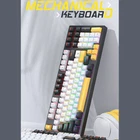 This 97- wired mechanical keyboard features a high-quality mechanical shaft for a comfortable typing experience. The full- -collision design makes the operation more precise. The Type-C USB connection is convenient for storage. It has 18 modes with adjustable brightness and . It also has quick media shortcut keys for easy operation. Features : 97- Design: This wired mechanical keyboard has 97 keys, providing comprehensive input options. High-Quality Mechanical switch: The blue/red switch provides a more comfortable typing experience with clear punctuation. Full- -Collision: The full- -collision design makes your operation more precise and enjoyable. Type-C USB Connection: The keyboard and cable are designed separately for easy storage. 18 Modes: 18 adjustable brightness and modes to meet your personalized needs. Quick Media Shortcut Keys: 13 media shortcut keys for media players and applications, making operation more convenient. Specification : Optional color: Black / Blue / Red / Grey Optional switch: Blue / Red Quantity of keys: 97 keys Wire length: 1.5 meters Connection: Type-C USB Working current: 120mA Working voltage: 5V : Mechanical : 6-color /18 modes Product size: 388*142*42mm Product Weight: 720±5g Package Size: 462*190*50mm Package Weight: 860g Package list: 1 x Keyboard 1 x Cable 1 x Instruction Manual