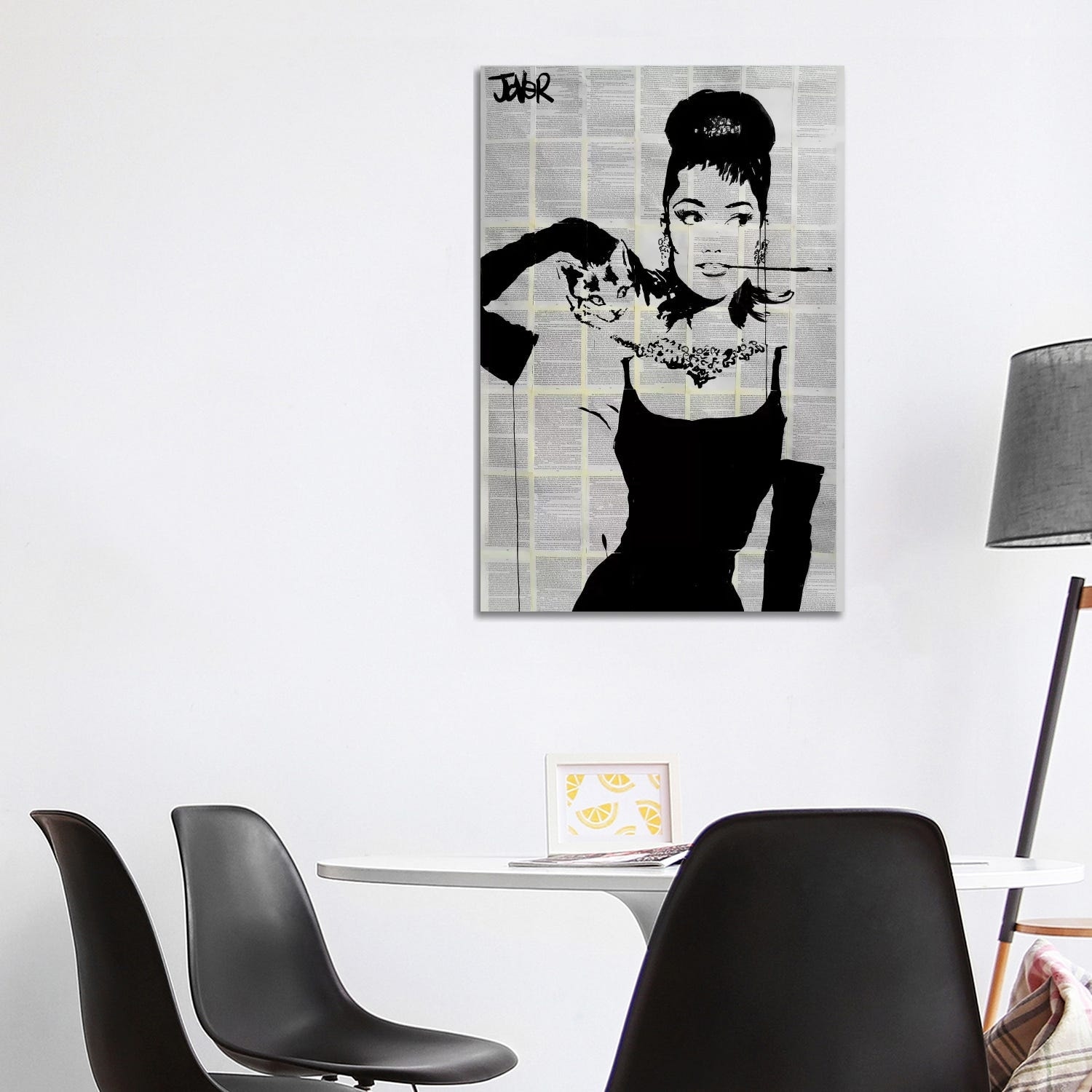Great art deserves to be on canvas! Giclee canvas artwork offers the texture, look and feel of fine-art paintings. 100% Made in USA Gallery wrapped - professionally hand-stretched Premium Epson Inks - vivid colors, fade-resistant, water-resistant Ready to hang - no assembly needed Includes hanging accessoriesSize Options (if available): 0.75" Deep Frame: Mini: 12x8 Small: 18x12 Medium: 26x18 Large: 40x26 1.5" Deep Frame: Small: 18x12 Medium: 26x18 Large: 40x26 Extra Large: 48x32 Oversized: 60x40 Free Shipping Over $49.99* Details iCanvas "Tiffany's" by Loui Jover Canvas Print Product Description: Great art deserves to be on canvas! Giclee canvas artwork offers the texture, look and feel of fine-art paintings. 100% Made in USA Gallery wrapped - professionally hand-stretched Premium Epson Inks - vivid colors, fade-resistant, water-resistant Ready to hang - no assembly needed Includes hanging accessories Size Options (if available): 0.75" Deep Frame: Mini 12x8 Small 18x12 Medium 26x18 Large 40x26 1.5" Deep Frame: Small 18x12 Medium 26x18 Large 40x26 Extra Large 48x32 Oversized 60x40