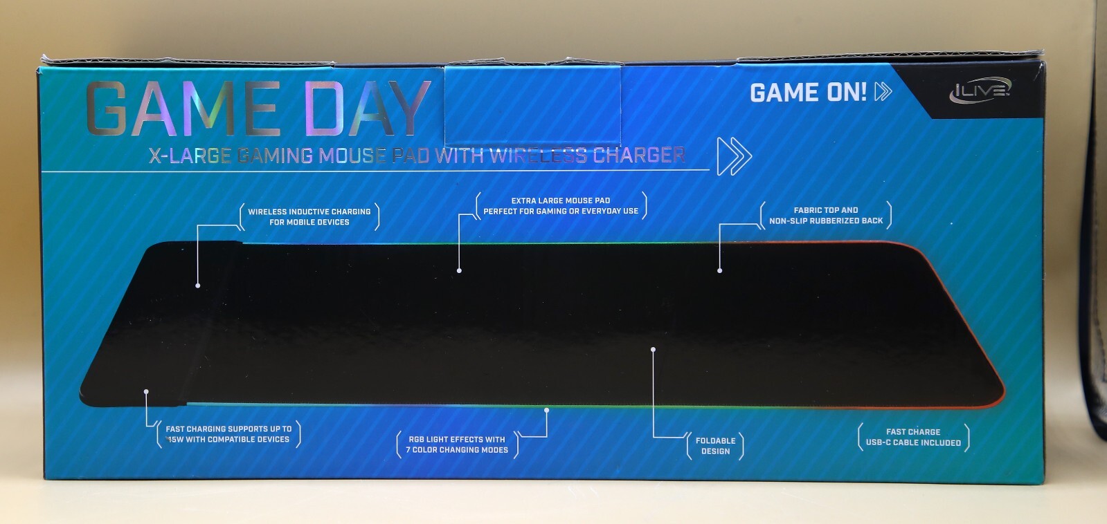 This item is an iLive X Large Gaming Mouse Pad with Wireless Charger. This item is a customer return that appears to be in new open box condition, tested and working. comes in original box with charging cable
