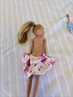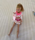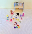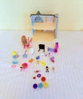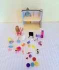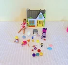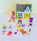 This is a Barbie doll playset called "Honey Bee Acres Sunflower Cottage." It includes a doll, bed, coffee table, bathtub, and animal figure. The doll has blonde hair and is made of plastic. The playset is 11 inches tall and suitable for all occasions. It is an original collector toy from China, designed for youth. The set does not have an antique design and is not handmade.