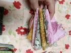 Beautiful cotton scrap fabric lot with different patterns/colors. Some are strips, some are squares, rectangles or pieces. Perfect for fabric crafts/quilting.
