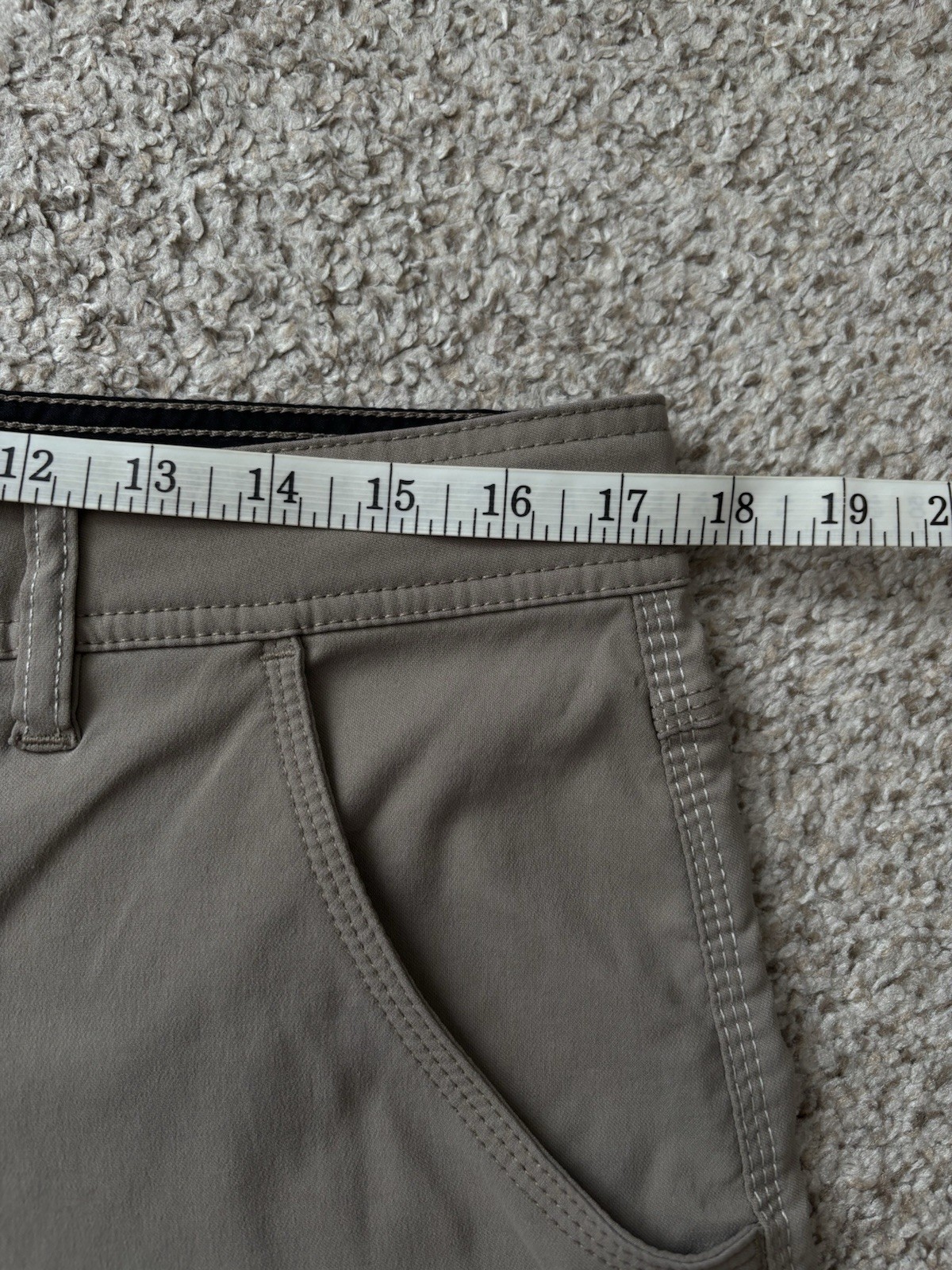 The prAna Men's Size 34 Dark Beige Stretch Zion Shorts are perfect for outdoor activities like hiking and traveling. Made with a blend of nylon and spandex, these shorts offer stretch and moisture-wicking properties for comfort. The belted design and mid-rise fit provide a secure and adjustable waist, while the cargo pockets add functionality. With a solid dark beige color and a durable woven fabric, these shorts are a stylish and practical choice for the summer, fall, and spring seasons.