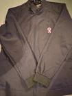 Black scrub jacket, deep pockets, breast cancer symbol on front. What is pictured is what it is.