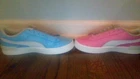WARNING!!! (THESE SHOES DO NOT COME WITH LASES) Unleash your vibrant style with these custom PUMA sneakers, designed to make a statement. The unique color coding of the left shoe in blue and the right shoe in pink creates a distinctive look that's sure to turn heads. Catering to women's size 8, these athletic shoes blend comfort with a playful, colorful theme reminiscent of Barbie's whimsical charm.Crafted for those who appreciate a personalized touch, these sneakers embody both fashion and function. The durable construction from the renowned brand PUMA ensures quality, while the sleek design of the pumba model stays on-trend with the latest in sneaker style. Whether you're hitting the gym or the streets, these shoes are a bold statement in any wardrobe.