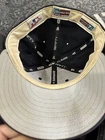 preowned. 7/10 worn condition. slight dirt/aging on hat/ inside hat/under brim. hat creasing. rare finds. see pics for more.