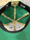 preowned. 7/10 worn condition. slight dirt/aging on hat/ inside hat/under brim. hat creasing. rare finds. see pics for more.